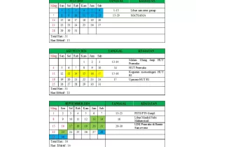 Kalender Pendidikan Madrasah Tsanawiyah Al Hidayah Wonoboyo Kalender Pendidikan Madrasah Tsanawiyah Al Hidayah Wonoboyo adalah sebuah dokumen perencanaan yang memuat jadwal kegiatan dan informasi terkait pelaksanaan proses pembelajaran di madrasah selama satu tahun ajaran. Kalender ini disusun berdasarkan ketentuan dan pedoman...